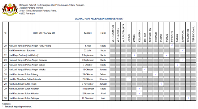 Kalendar Cuti Umum Dan Cuti Sekolah 2017