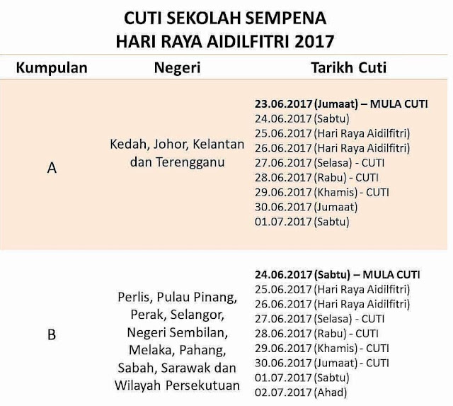 Skphem Tarikh Cuti Hari Raya Aidilfitri 2017