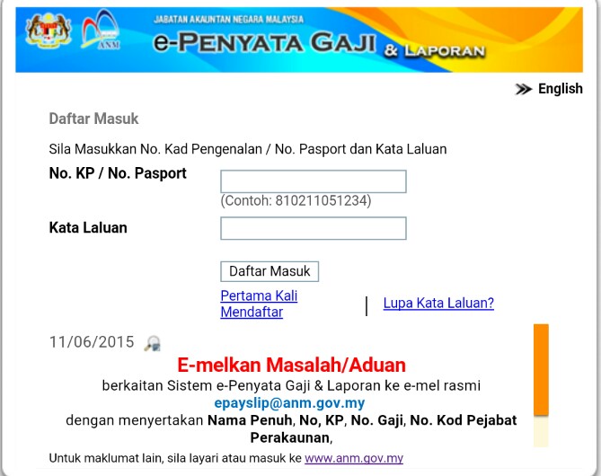 Login Slip Gaji Online E Penyata Gaji Laporan Anm Skoloh