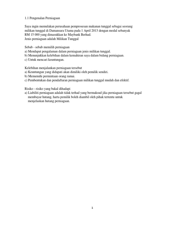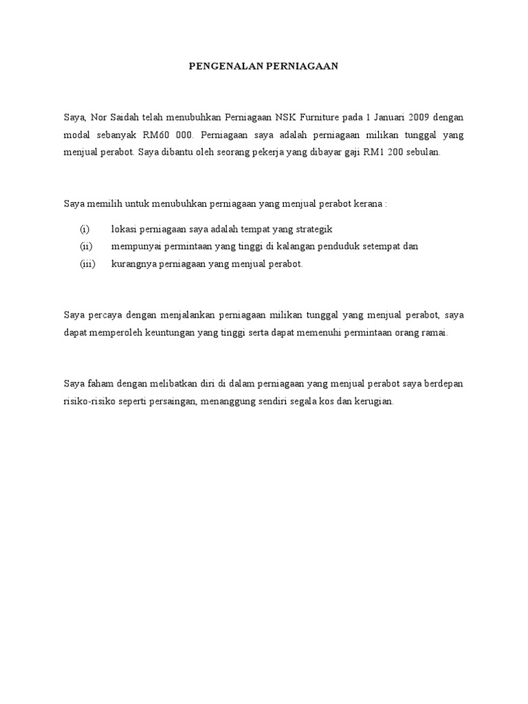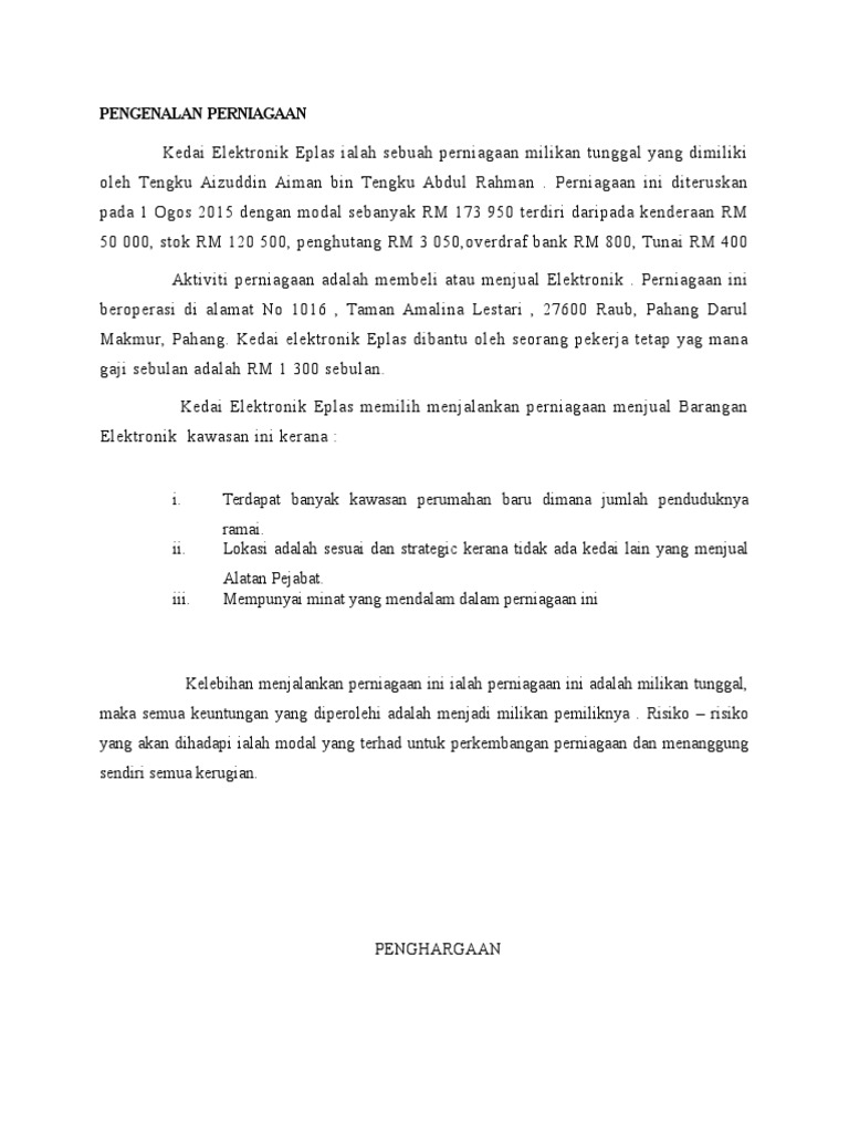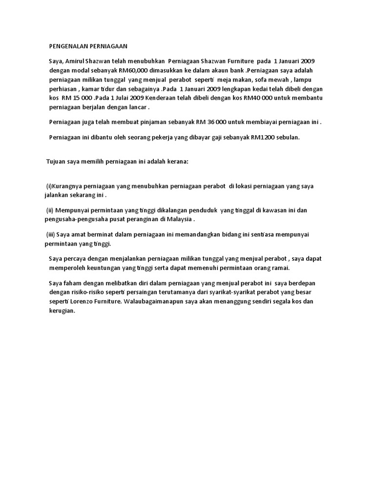 Contoh Pengenalan Perniagaan Docx