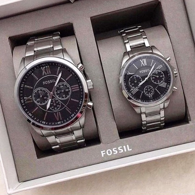 Fossil Watch Couple Set Silver Bq2180set Shopee Malaysia