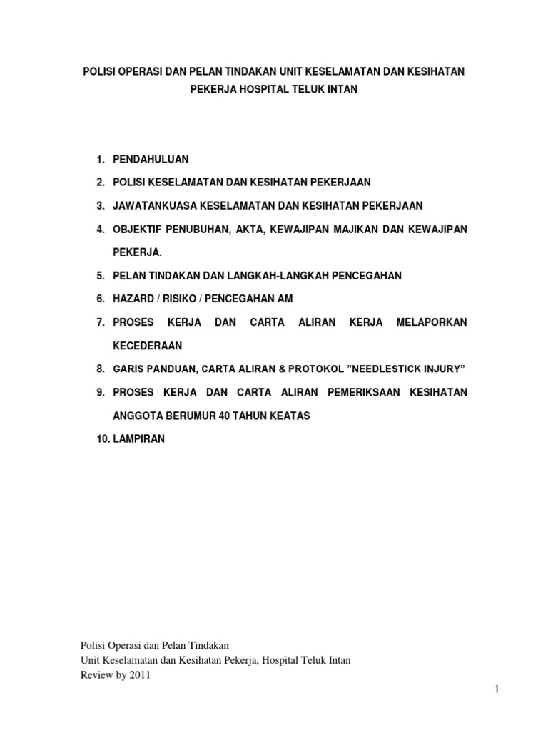 Polisi Keselamatan Dan Kesihatan Pekerjaterkini