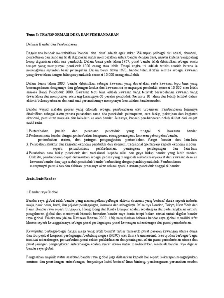 Geografi Stpm Bahagian B Transformasi Desa Dan Pembandaran