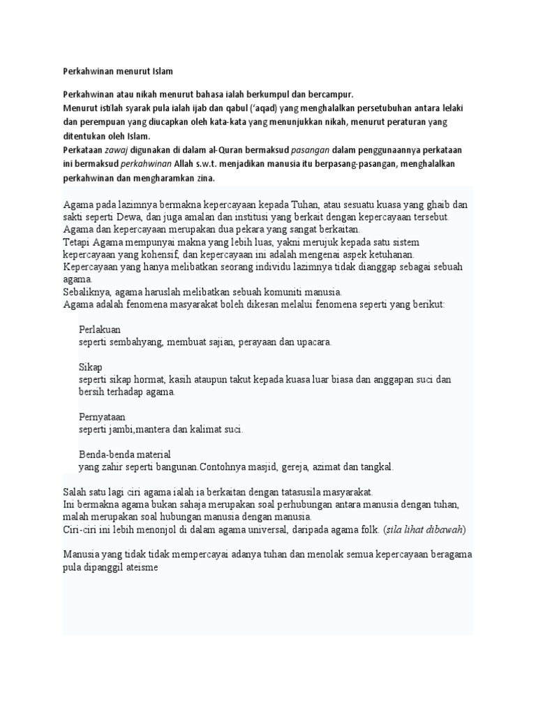 Perkahwinan Menurut Islam Wla 104 03 Pengajian Islam