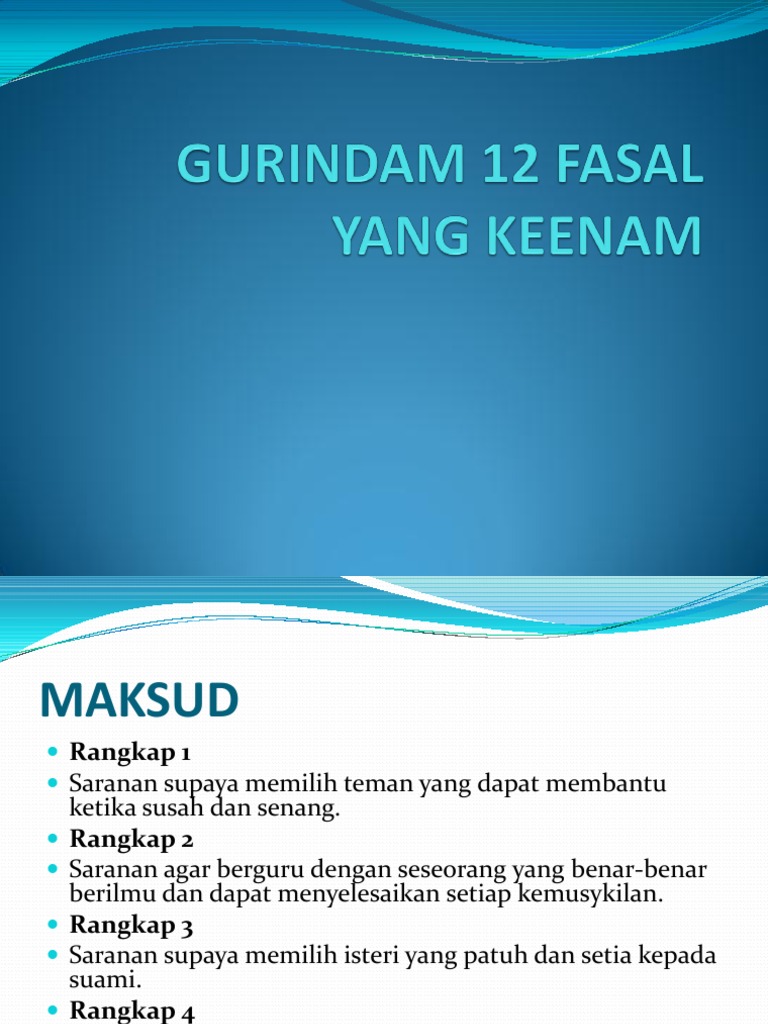 Gurindam Dua Belas Fasal Yang Ketiga Bm Tingkatan 4