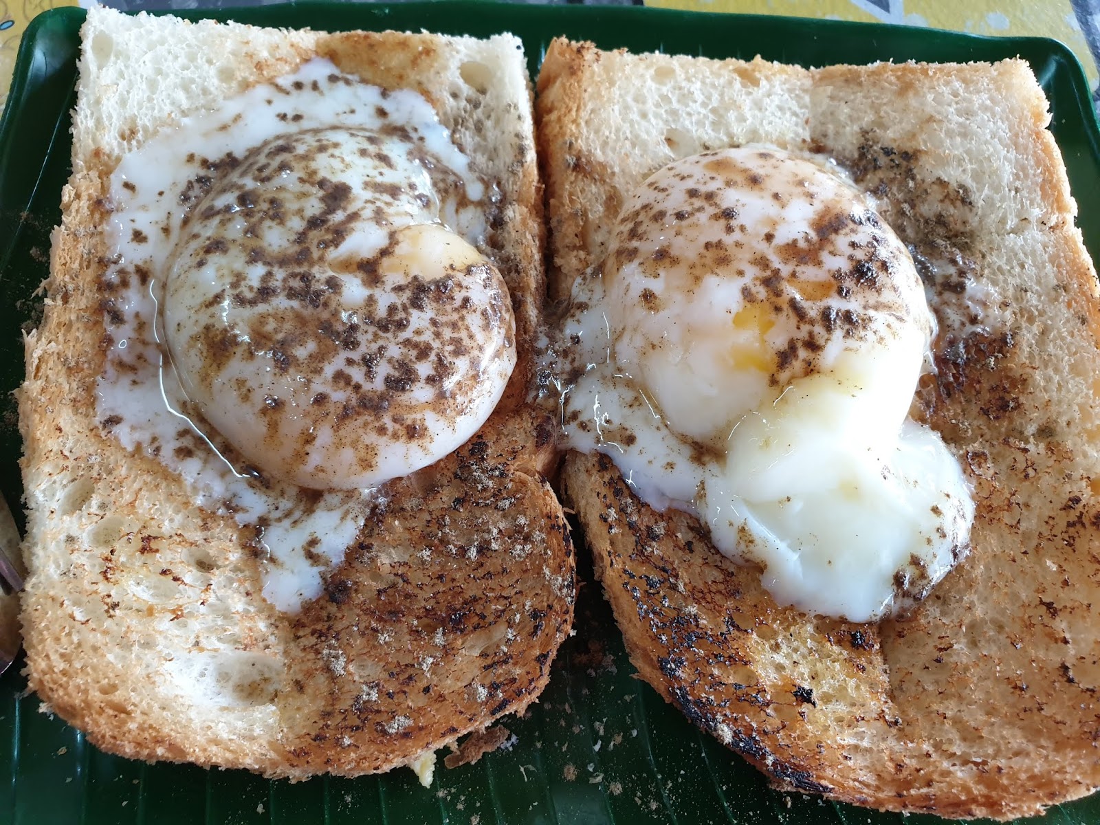 Ada roti canai telur roti bakar telur goyang mee goreng telur mata dan pelbagai lagi. Hanya rendam telur dalam air masak. Tak ada siapa paksa pun kan hihi. Menurut emak saya ada satu tempat berdekatan stesen ktm ipoh yang sediakan roti bakar telur goyang yang sedap.