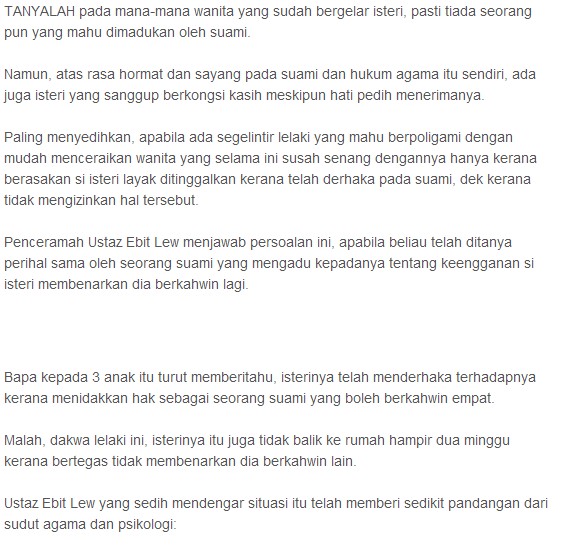 Sila Hadam Adakah Derhaka Seorang Isteri Tidak Beri Keizinan Kepada Suaminya Untuk Kahwin Lagi Ini Jawapan Yang Semestinya Mengejutkan Semua Malaysiantrending
