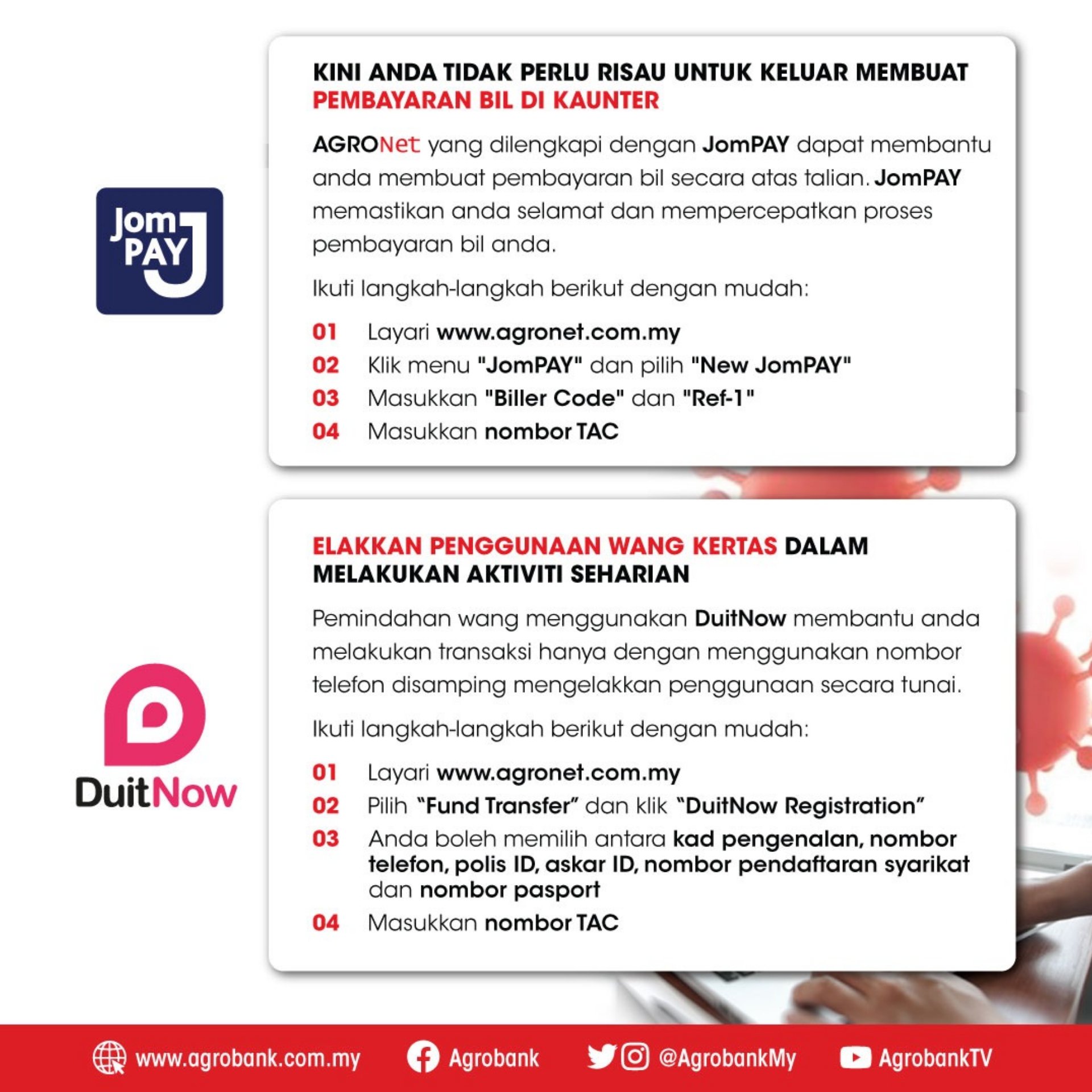Agrobank On Twitter Nak Membeli Barang Keperluan Nak Bayar Bil Bil Uitiliti Jom Gunakan Jompay Dan Duitnow Melalui Perbankan Internet Agronet Dan Agronetbiz Sekarang Kita Mampu Memutuskan Rantaian Jangkitan Covid 19 Untuk Maklumat