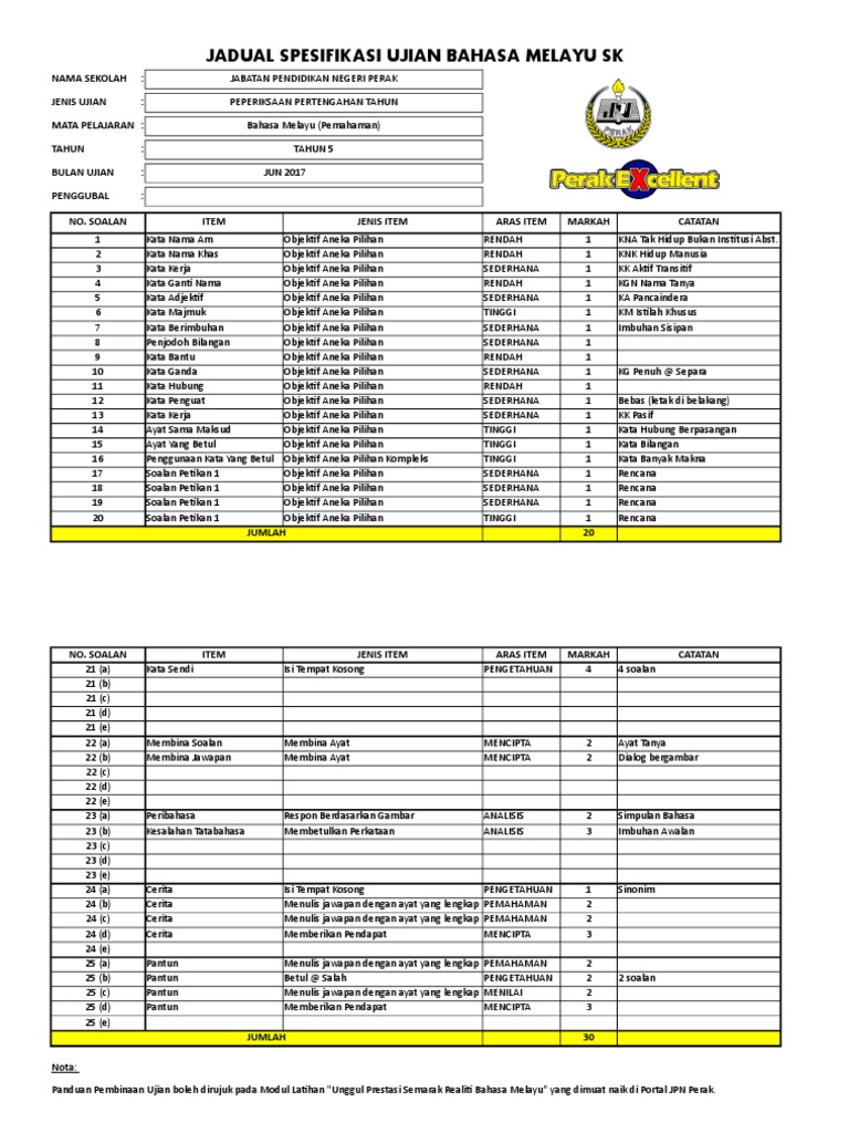 Jsu Bahasa Melayu Sk Ppt Tahun 5 2017