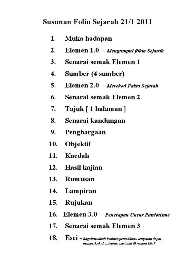 Susunan Folio Kks Elemen 1 2 Dan 3 Kerja Kursus Sejarah 2011
