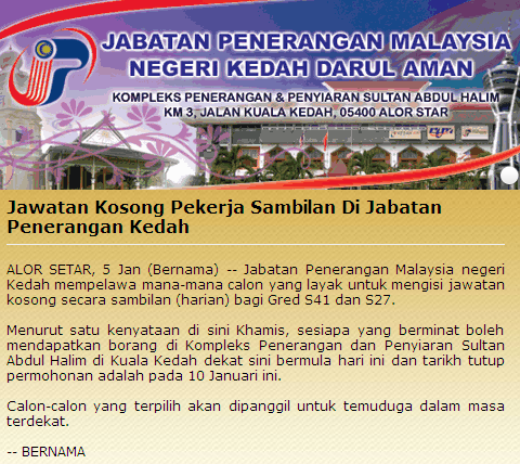 Pembela Jawatan Kosong Jabatan Penerangan Malaysia Negeri Kedah
