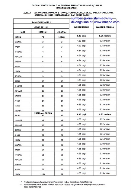 Kau Ilhamku Jadual Waktu Berbuka Puasa Dan Imsak 1437 H 2016 M Bagi Negeri Sabah