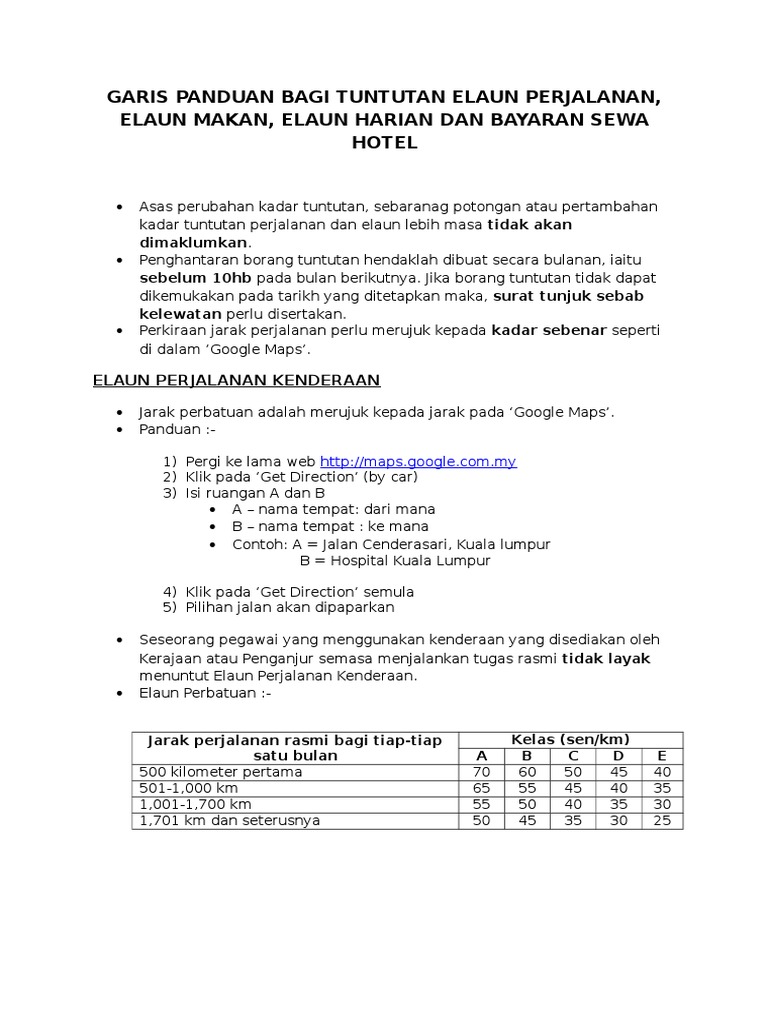 Garis Panduan Bagi Tuntutan Elaun Perjalanan Elaun Makan Elaun Harian Dan Bayaran Sewa Hotel