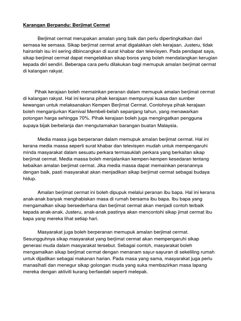 Contoh Karangan Spm Amalan Berjimat Cermat