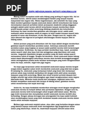Karangan Peranan Ibu Bapa Menggalakkan Aktiviti Kokurikulum