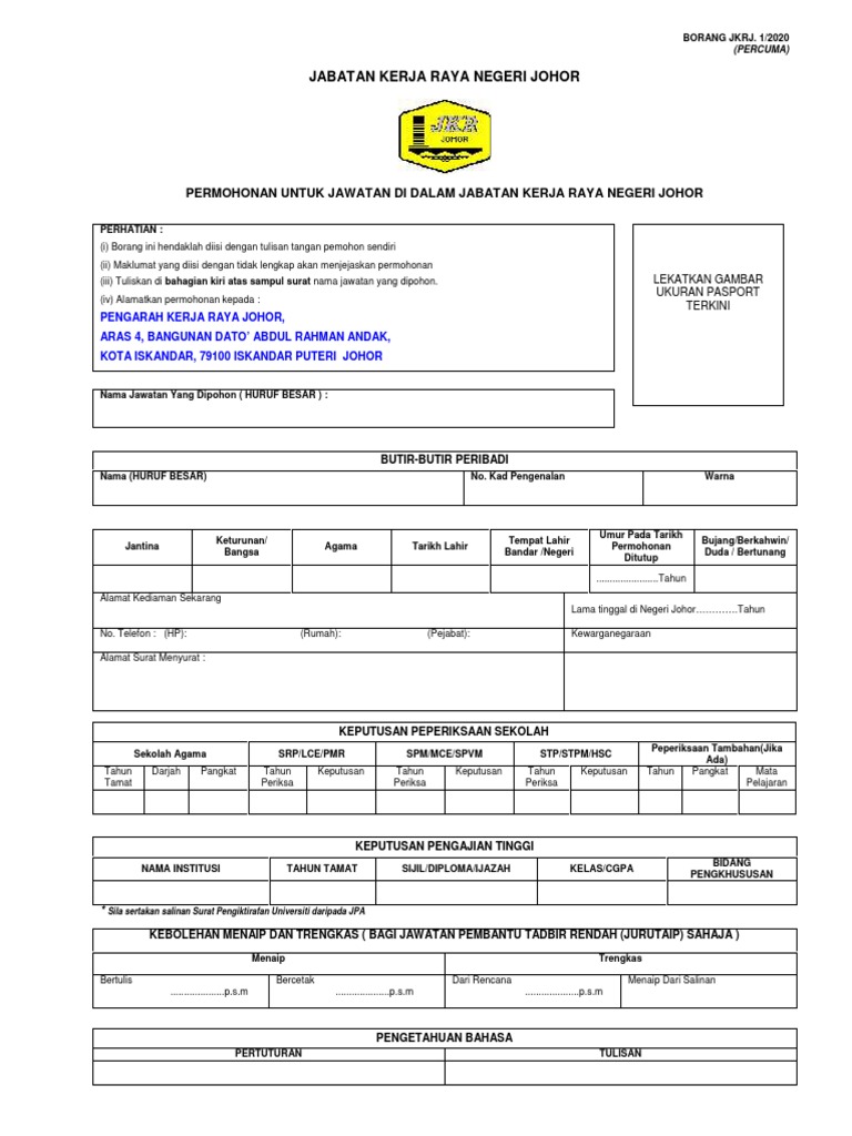 Borang Jawatan Kosong 2020