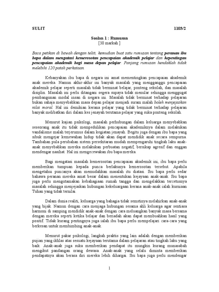 Latihtubi Bahasa Melayu Kertas Dua Rumusan Dan Petikan Umum Ko