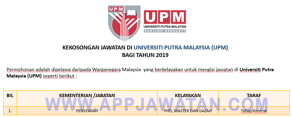 Iklan Jawatan Kosong Upm Kampus Serdang Dan Hpupm 2019 Rungus My