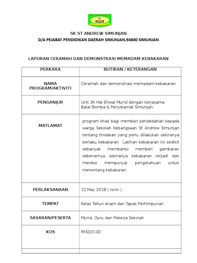 Doc Kertas Kerja Program Kebakaran Sekolah Zamer Rahman Academia Edu