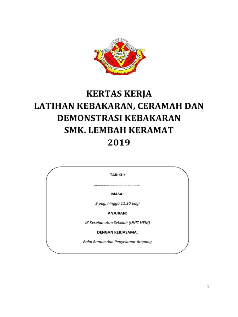 Kertas Kerja Latihan Kebakaran Smkm 2019