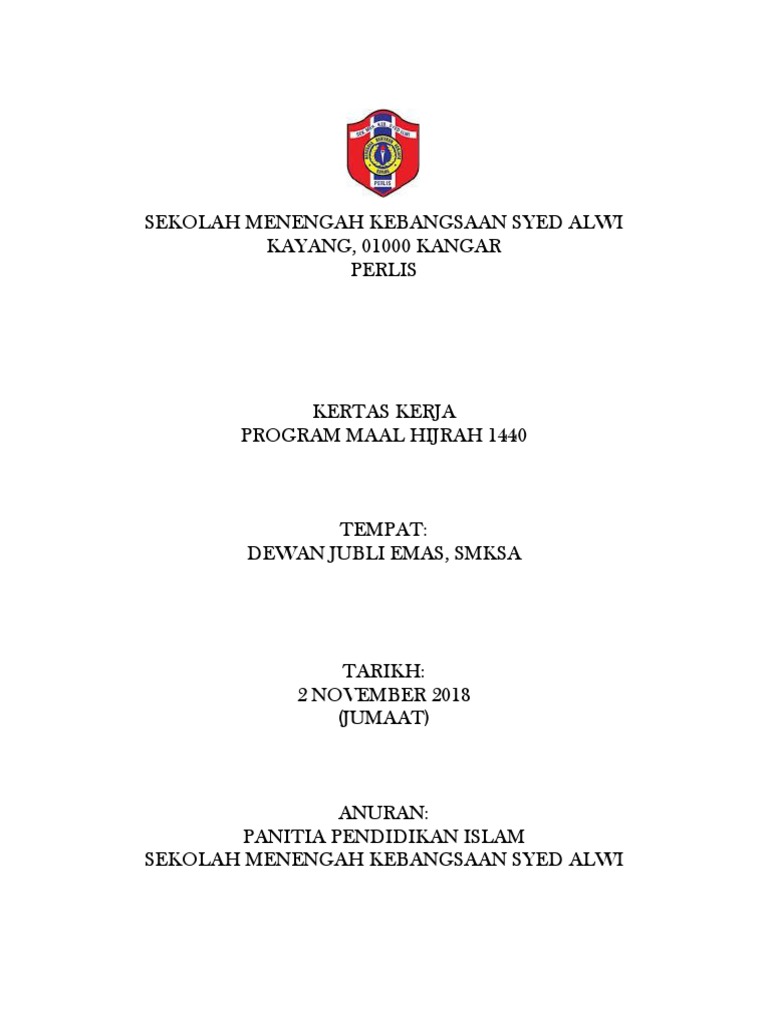 Kertas Kerja Sambutan Maal Hijrah Peringkat Sekolah